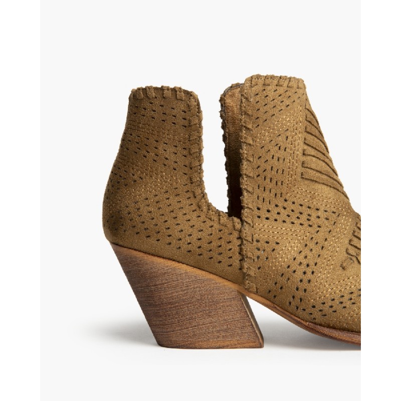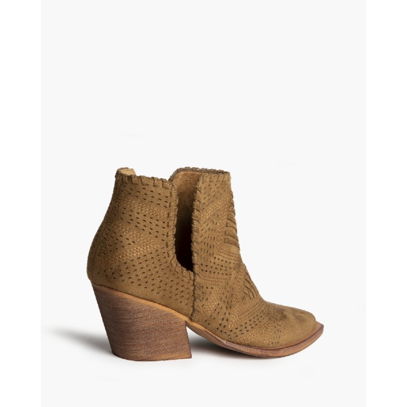 Bota estilo campero. Caña con detalle de pasados. Detalles bordados en la punta y caña.
