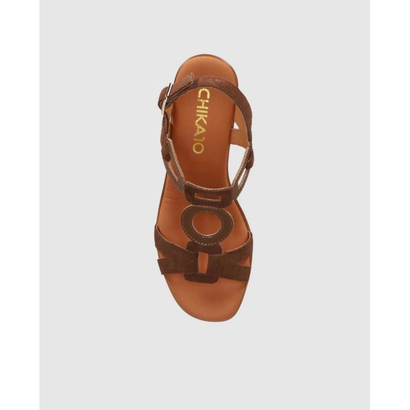 Sandalia de piel tipo serraje con tacón medio ancho y planta acolchada que alarga la figura sin renunciar a la comodidad. Sus tiras finas combinadas con piezas geométricas en el empeine sujetan el pie y dan un toque muy especial a cualquier look. Póntelas y deja que tus pasos sean el detalle que lo coordine todo.