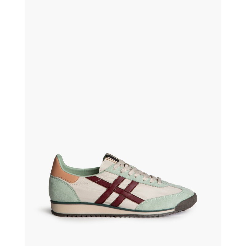 Zapatilla deportiva estilo retro en combinación de materiales. Cierre mediante cordones de siete pasadas.