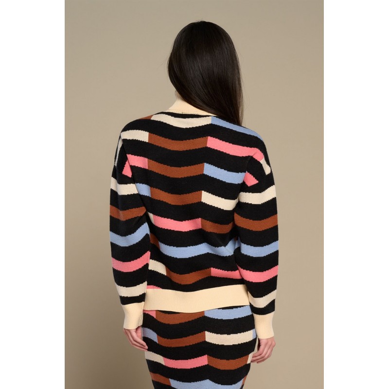 Jersey de punto con cuello alto vuelto y manga larga. Cuello, cintura y mangas en rib.